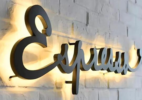 Le lettrage rétro-éclairé offre une lecture claire et maîtrisée du logo, grâce à un éclairage diffus positionné à l’arrière des lettres. Cette mise en lumière crée une profondeur élégante et met naturellement le message en perspective.